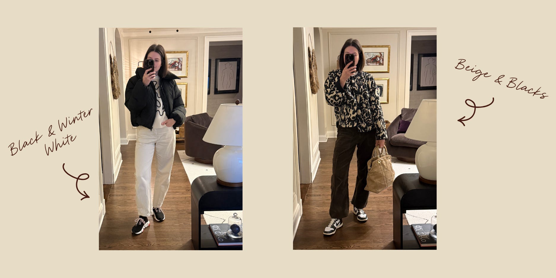 Monochrome can look chic online, but in real life it often falls flat. Right now, I’m anchoring outfits around two colors, even if is just neutrals. It gives me guidance when selecting, keeps things cohesive without feeling sterile, and interesting without being complicated. The goal isn’t expression through excess, it’s ease with intention.