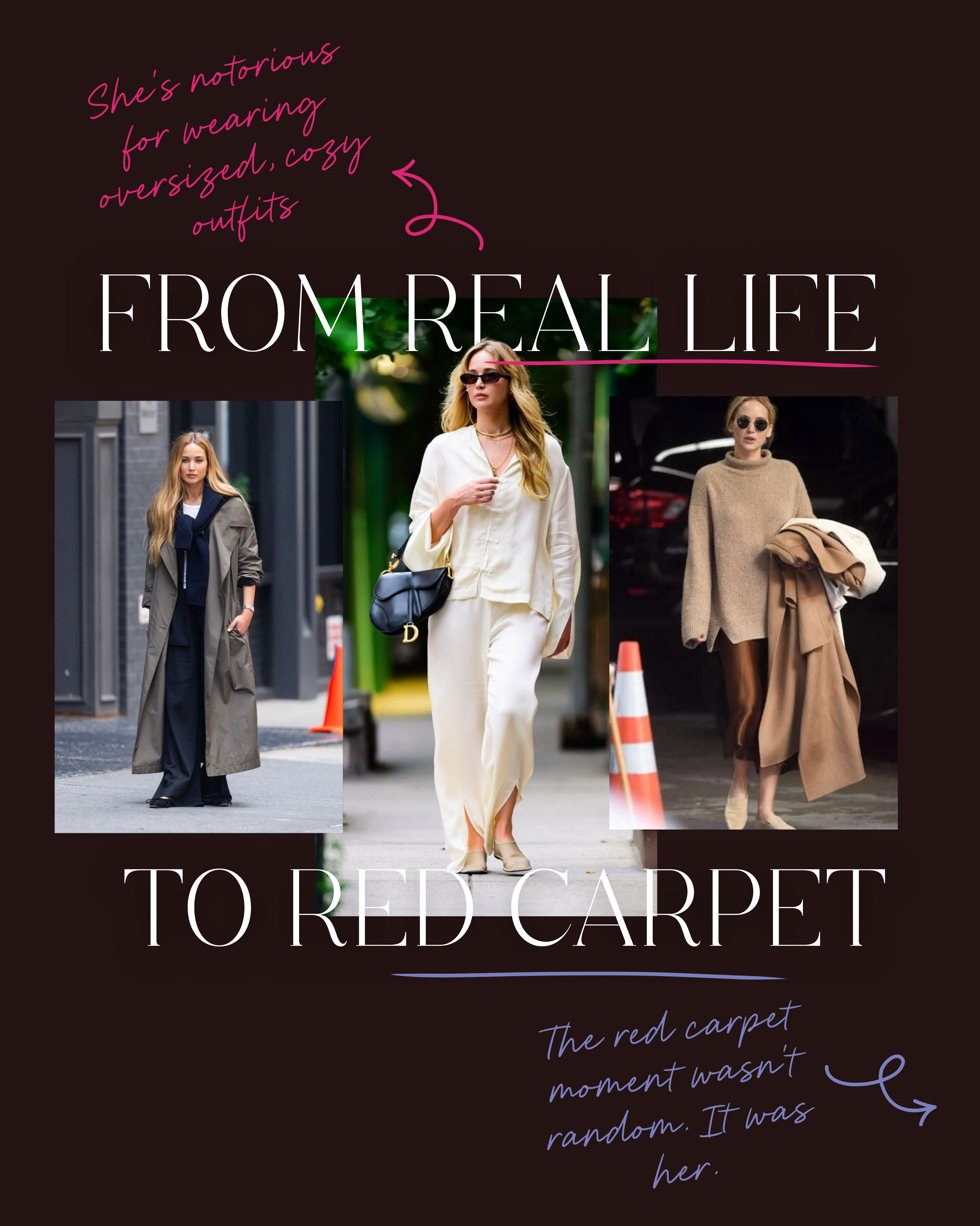 She was confident, and that radiated. Why? Because it was authentic to her. JLaw is notorious for wearing oversized, cozy outfits on the street. She didn’t abandon her style for the red carpet. She elevated it using The Unassuming Method.