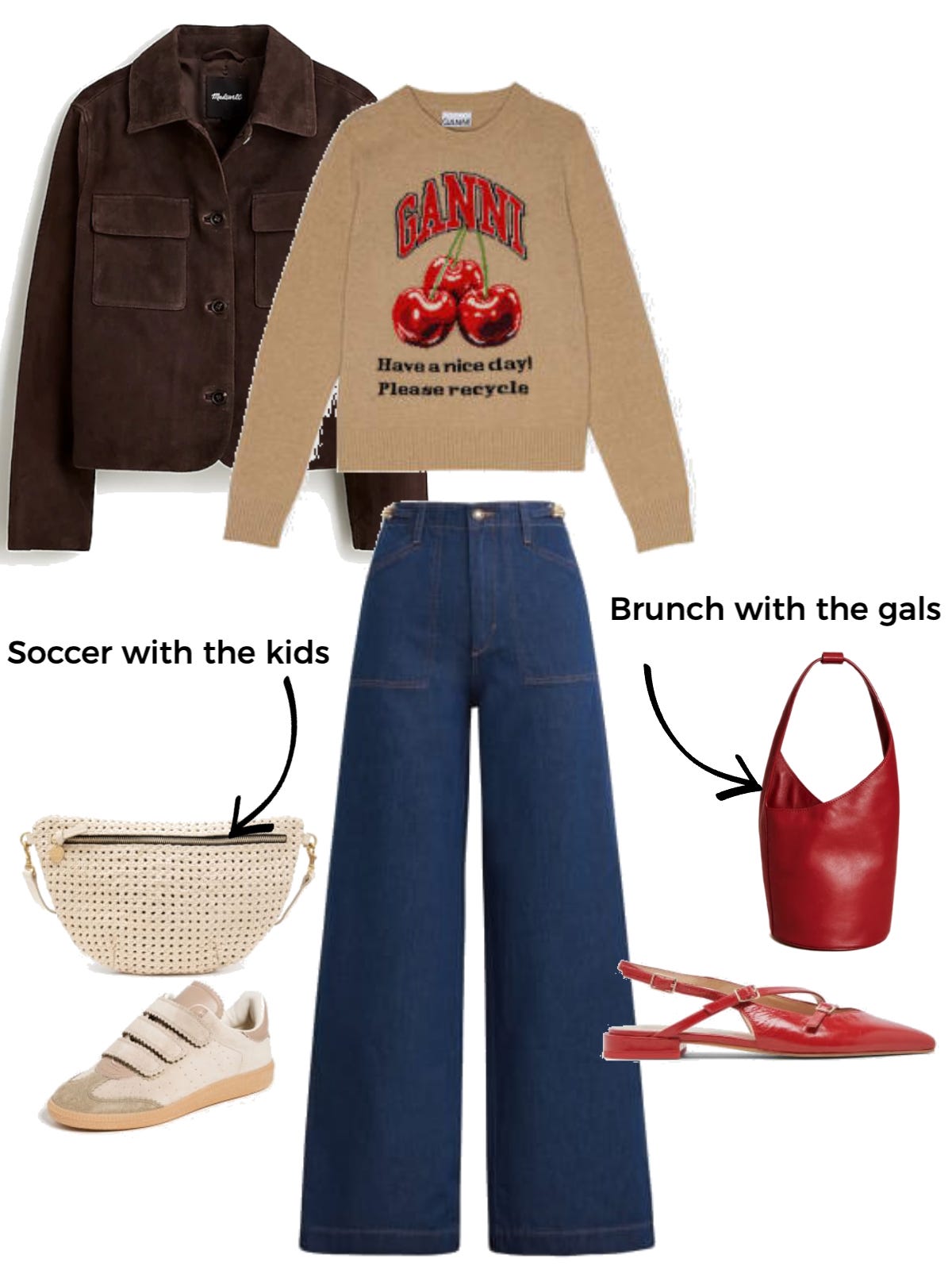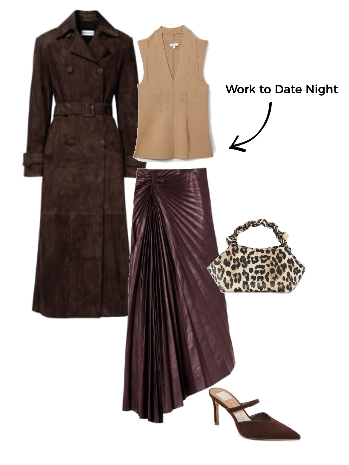 A take on monochromatic. Okay hot take, but gone are the days of true monochromatic outfits and in are the days of leaning into a color family. Let me explain, I love dark chocolate paired with other tan/brown neutrals, and even a deep burgundy. All siblings, just not twins. That to me scream effortless in the same way monochromatic looks do, but more stylish.
