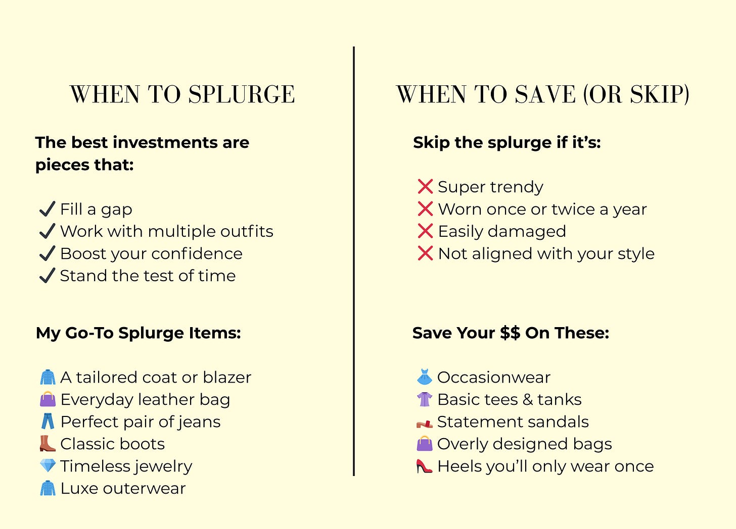 When you’re clear on what to splurge on—and what to skip—you stop feeling like you’re constantly chasing the perfect wardrobe.
